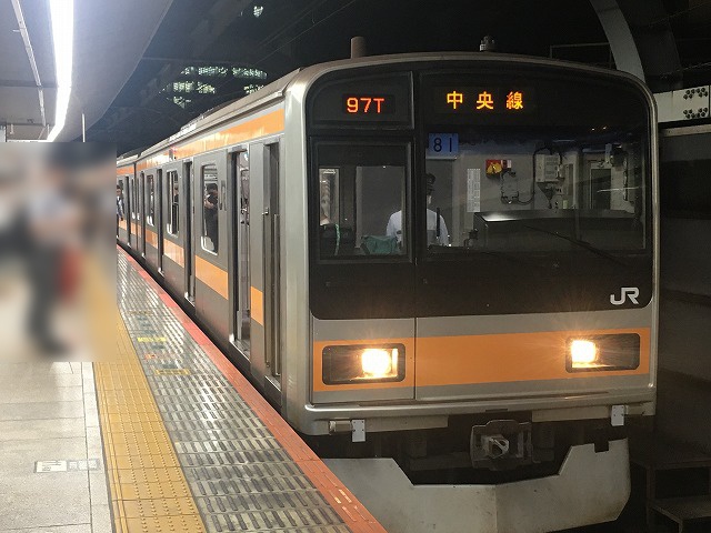 東京駅、中央線のホームまで上がってきたら、ちょうど列車が入線してきた。