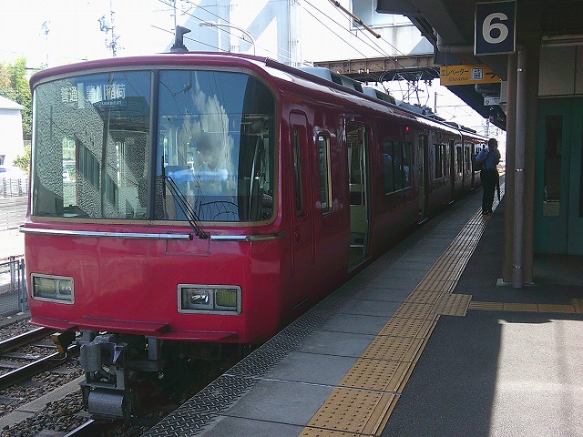 いかにも“名鉄”という感じの真っ赤な車両が眩しい。