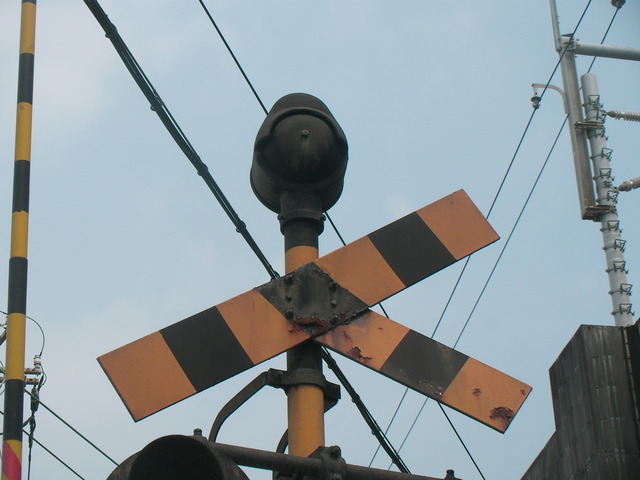 駅から少し歩いたところにある踏切は、現在では珍しい電鈴式の警報機が!