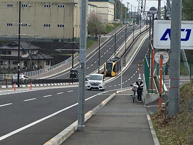 ベルモールの最寄り、宇都宮大学陽東キャンパス停留場を抜けると専用軌道に入り、