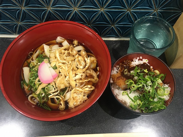 温かいきしめんとミニ味噌カツ丼セット(630円)
