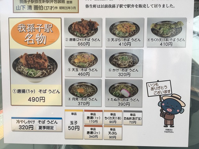 入り口に貼ってあるメニュー表には"我孫子駅"と書かれております。w